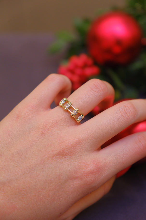 Zincir formundaki modern halkaları ve taşlı detaylarıyla güçlü ama zarif bir stil sunar. Günlük kullanıma uygun, minimal ve şık bir modeldir.