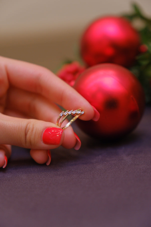 Sıralı taş detaylarıyla zarif ve feminen bir görünüm sunar. İnce formu sayesinde tek başına sade bir şıklık yaratır, kombinlerde üst üste kullanıma da uygundur.
