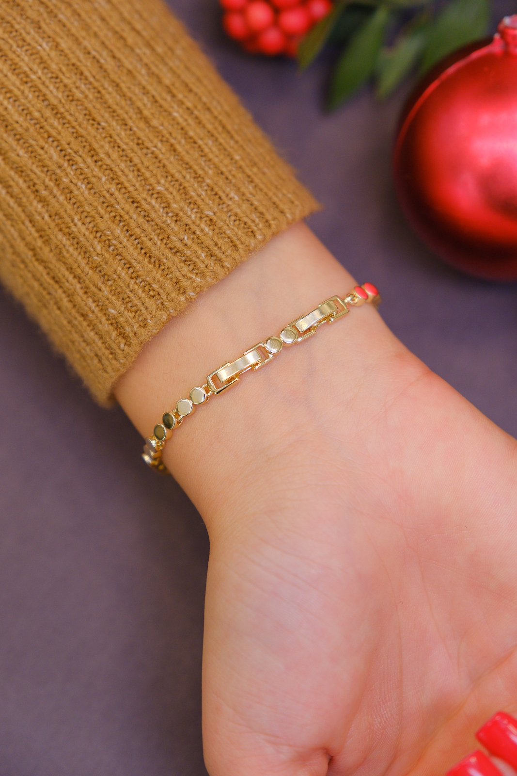 Minimal daire formundaki zincir yapısıyla zarif ve modern bir görünüm sunar. Günlük kullanımda tek başına şık, diğer bilekliklerle birlikte kombinlendiğinde tamamlayıcı bir parça olur.