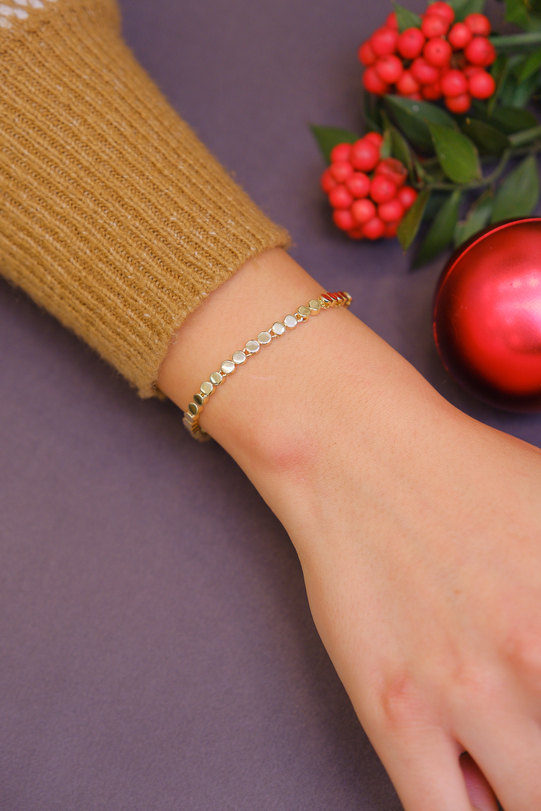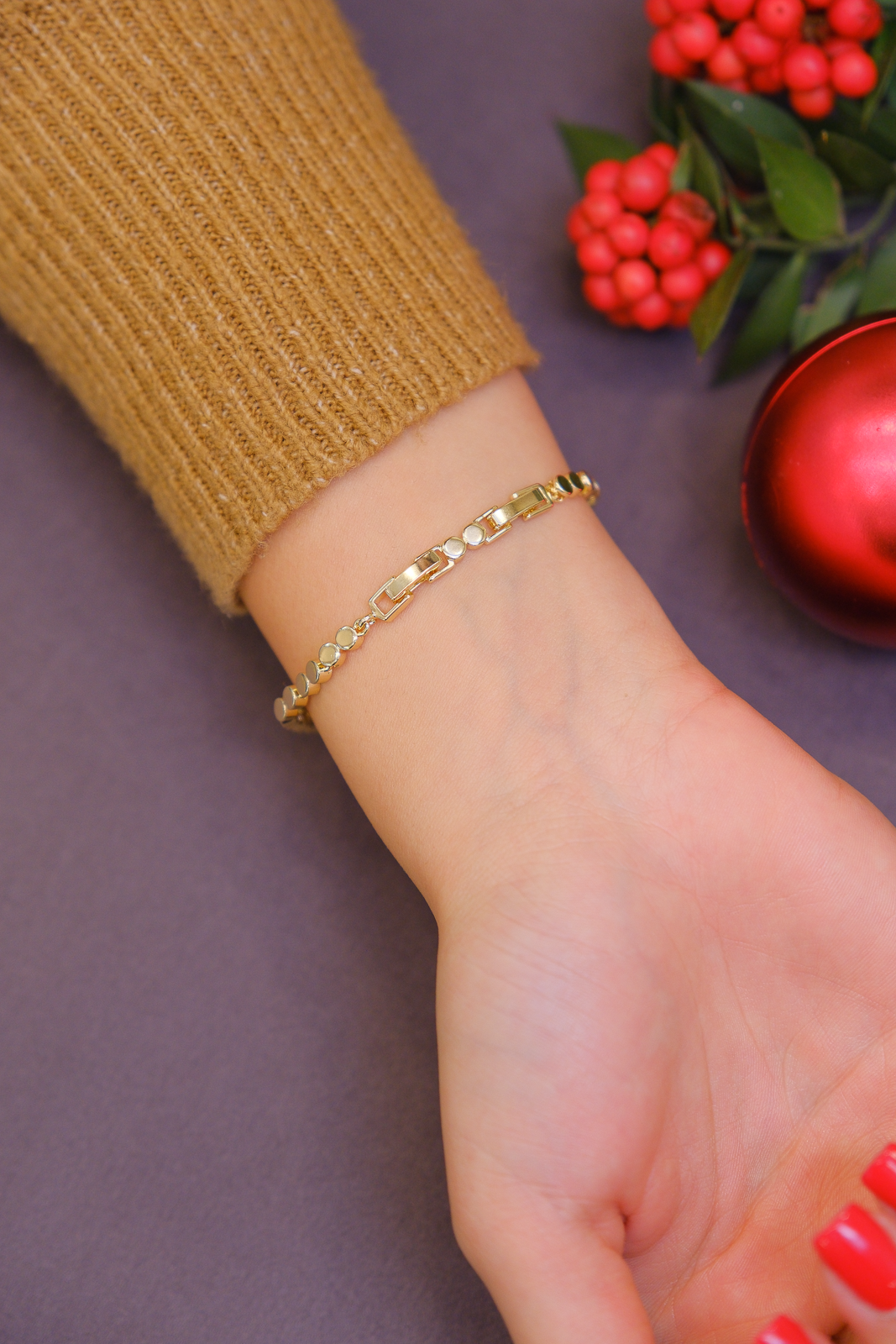 Yuvarlak disk detaylarıyla hareket kazanan zincir yapısı, bilekte sade ama dikkat çekici bir görünüm sunar. Düz zincir geçişleri sayesinde dengeli ve modern bir form oluşturur. Günlük kullanıma uygun olduğu gibi diğer zincir bilekliklerle kombinlendiğinde premium bir stil tamamlayıcısı olur.
