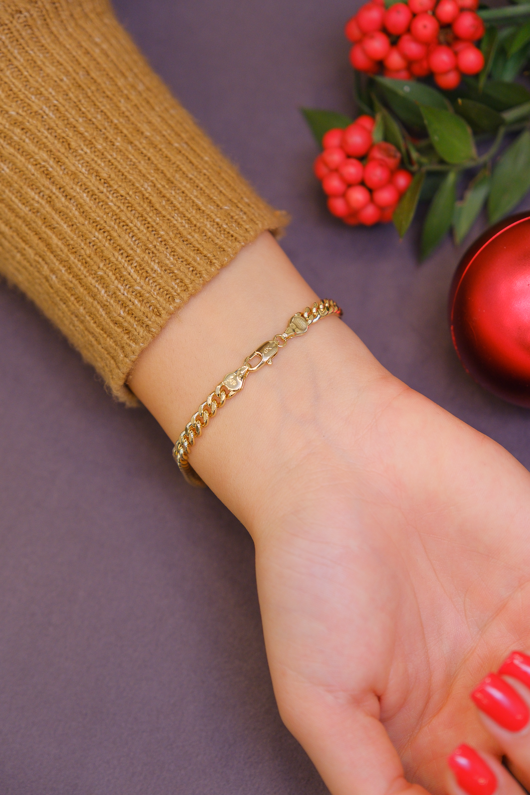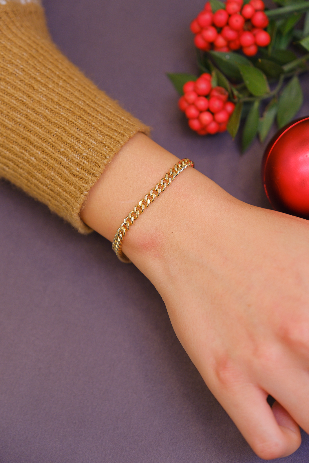 Düz ve birbirine simetrik şekilde ilerleyen gurmet zincir formuyla sade ve zamansız bir şıklık sunar. İnce yapısı sayesinde bilekte hafif ve dengeli bir duruş oluşturur. Günlük kullanıma uygun minimalist tasarımıyla tek başına zarif bir görünüm sağlarken, farklı bilekliklerle birlikte kullanıldığında modern kombinlere uyum sağlar.