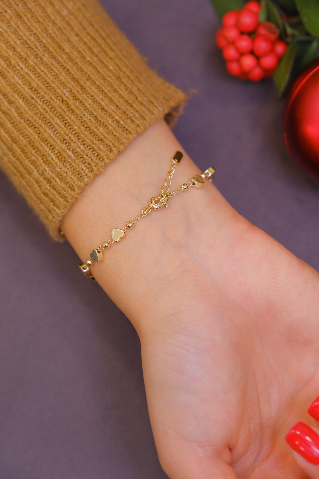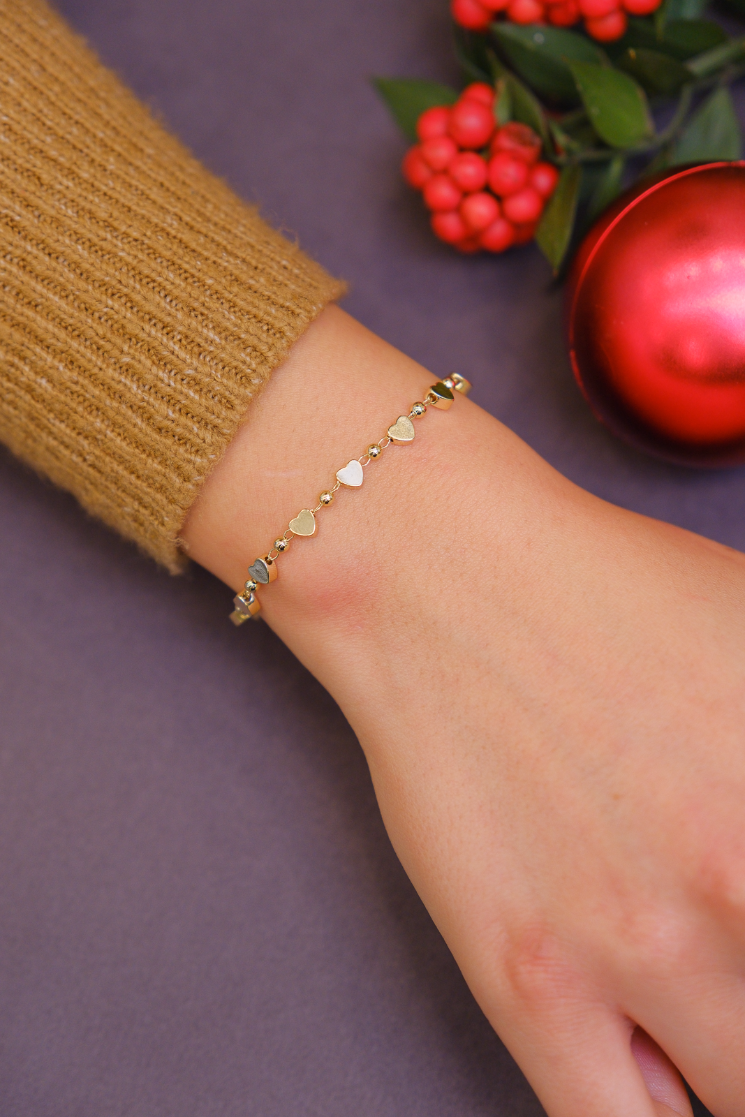 Minimal kalp figürleriyle hareket kazanan bu ince bileklik, zarif ve sade bir şıklık sunar. Hafif yapısı sayesinde bilekte konforlu bir kullanım sağlarken, günlük kombinlere romantik ve modern bir dokunuş katar. Tek başına şık bir görünüm sunar, farklı ince bilekliklerle birlikte kolayca kombinlenebilir.