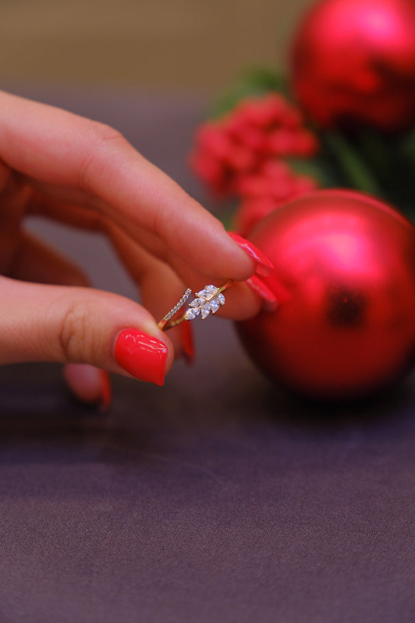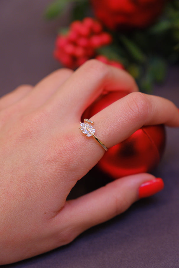 Yaprak formundaki taş dizilimiyle zarif ve doğal bir ışıltı sunar. İnce yapısı sayesinde günlük kullanıma uygundur; sade ama feminen bir modeldir.