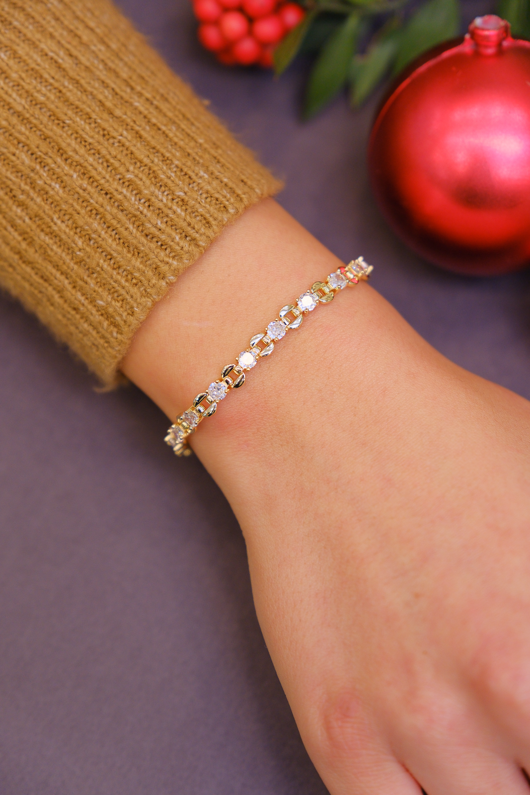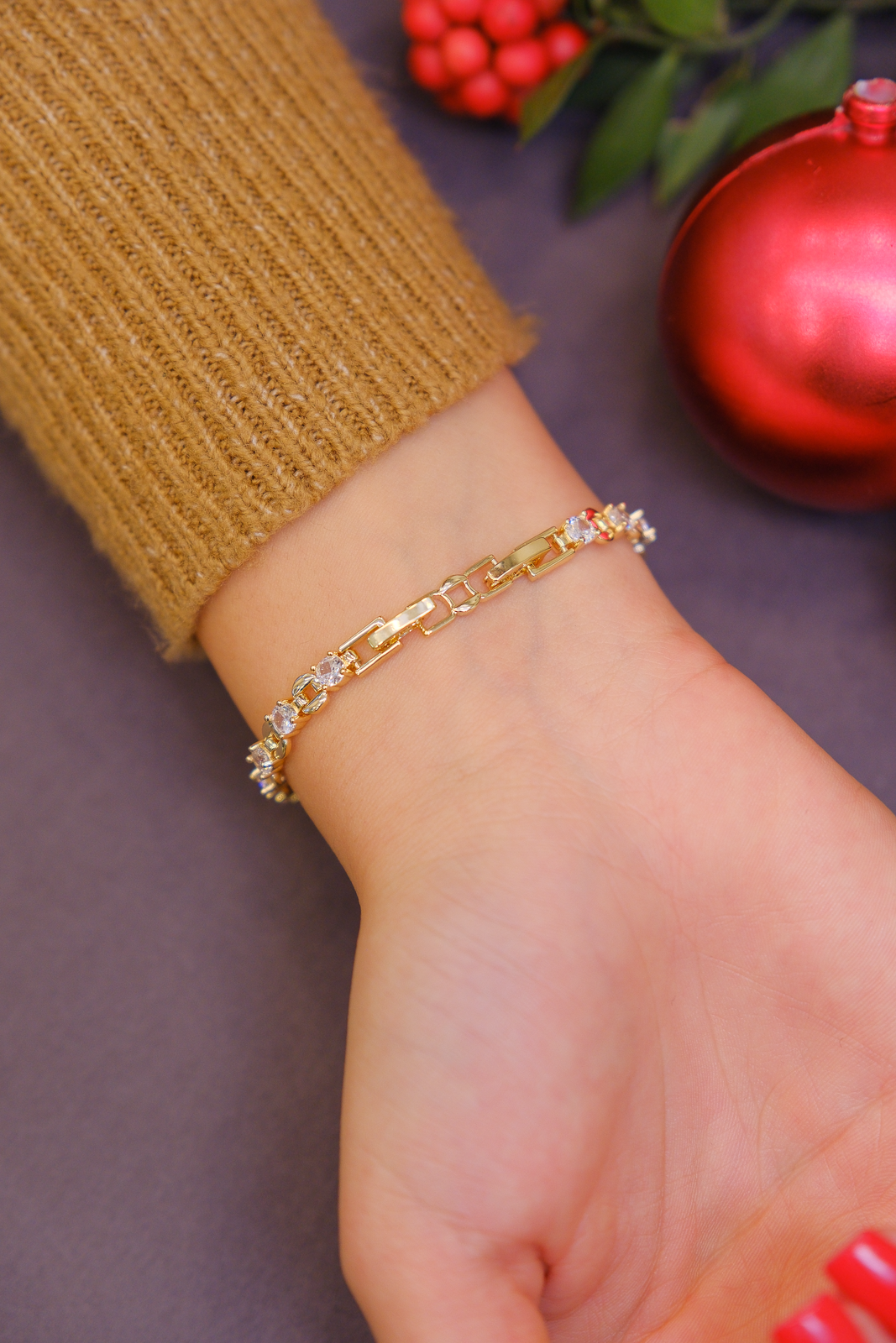 Luma bileklik, ince zincir formu ve taşlı detaylarıyla zarif bir ışıltı sunar. Günlük kullanımda sade şıklık arayanlar için ideal, tek başına da katmanlı kullanıma da uygundur.