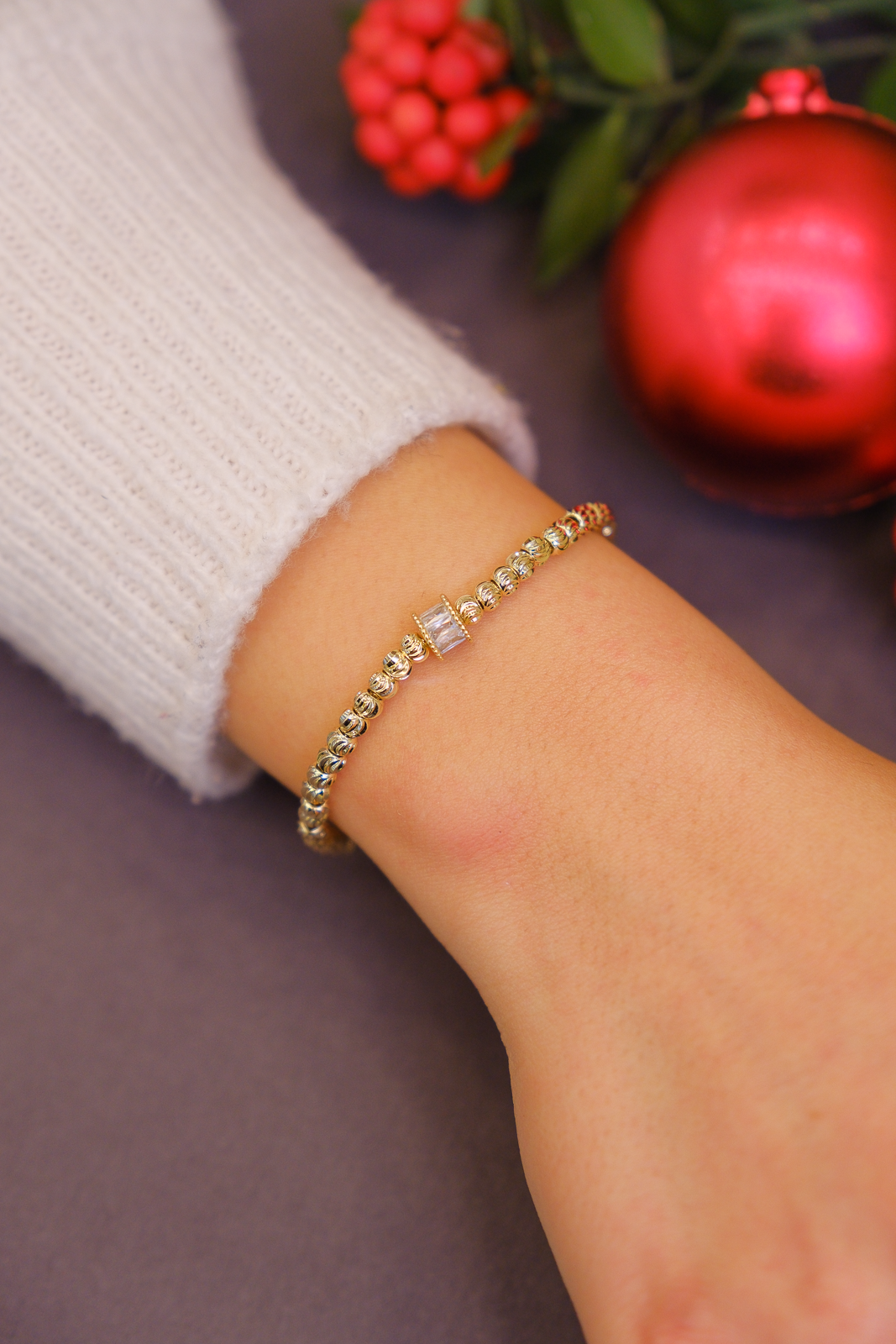 Ortadaki tek taş detayıyla öne çıkan bu bileklik, sade ama dikkat çekici bir şıklık sunar. Günlük kullanıma uygundur ve tek başına ya da kombinlenerek rahatlıkla kullanılabilir.