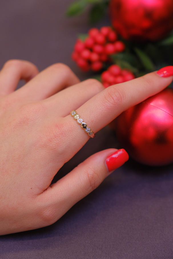 Yuvarlak taş dizilimiyle dengeli ve modern bir görünüm sunar. İnce yapısı sayesinde günlük kullanıma uygundur; sade ama ışıltılı bir modeldir.
