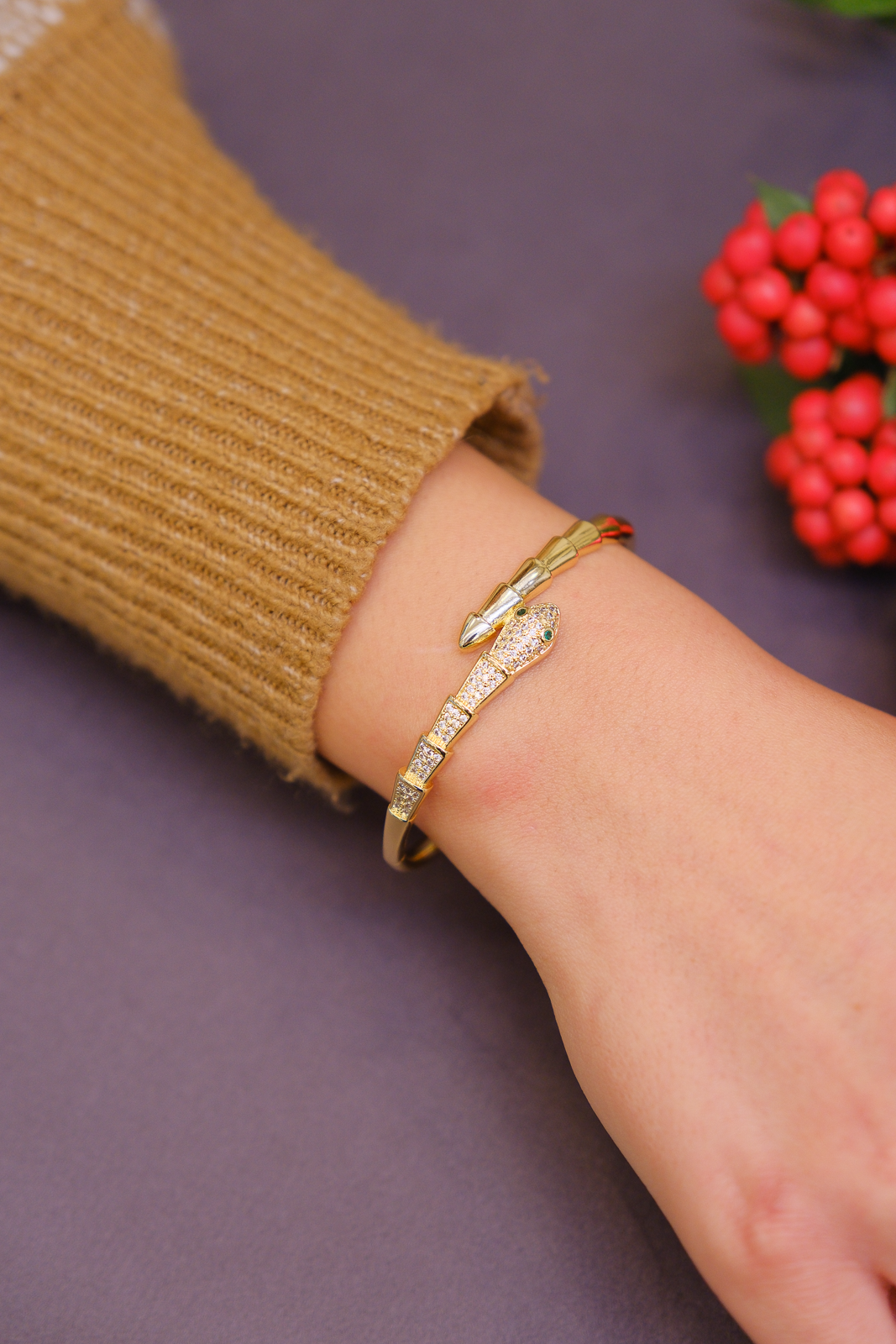 Yılan Form Kelepçe, akıcı ve kıvrımlı tasarımıyla güçlü bir stil vurgusu sunar. Taş detaylarıyla hareket kazanan formu, bilekte dikkat çekici ama dengeli bir duruş oluşturur. Tek başına kullanıldığında iddialı bir görünüm sağlarken, farklı kelepçelerle kombinlendiğinde modern ve cesur bir stil tamamlayıcısı olur.