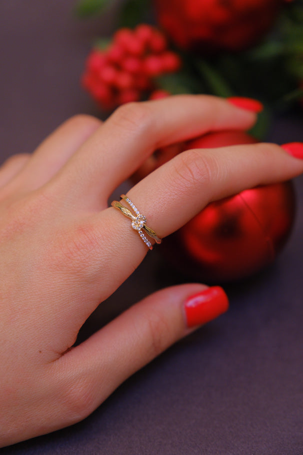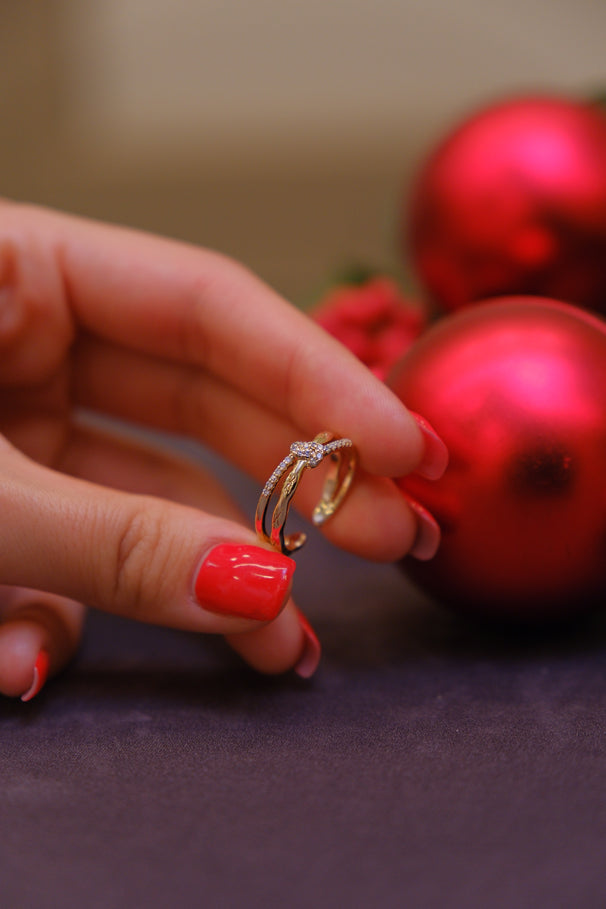Ortada yer alan düğüm detayı ve iki yandan uzanan ince taşlı bantlarıyla zarif ve modern bir görünüm sunar. Minimal ama dikkat çekici tasarımı sayesinde hem günlük kullanımda hem de özel anlarda şıklığı tamamlayan bir modeldir.